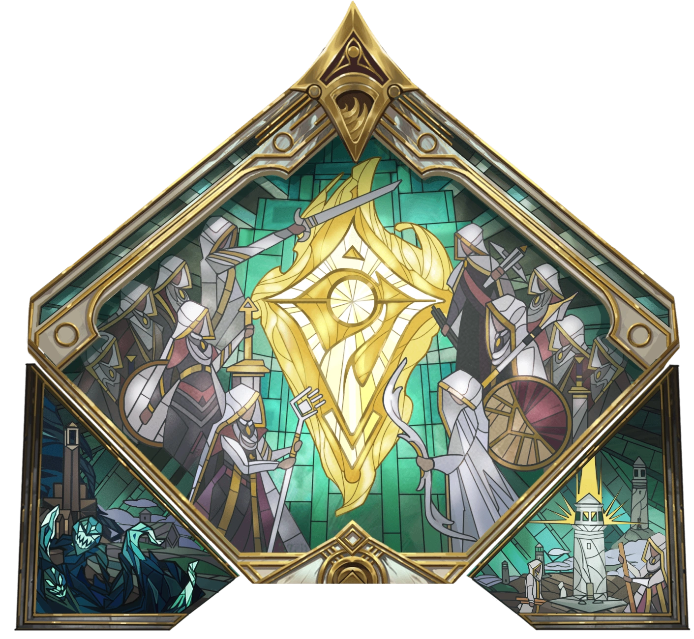 Vault beneath the Deathseeker sanctum - arms/wealth/armour, all have Azazael’s crest and made of white metal inlaid with gold. Ancient armaments of the Lightseekers, not used since the war of dawn and dusk.